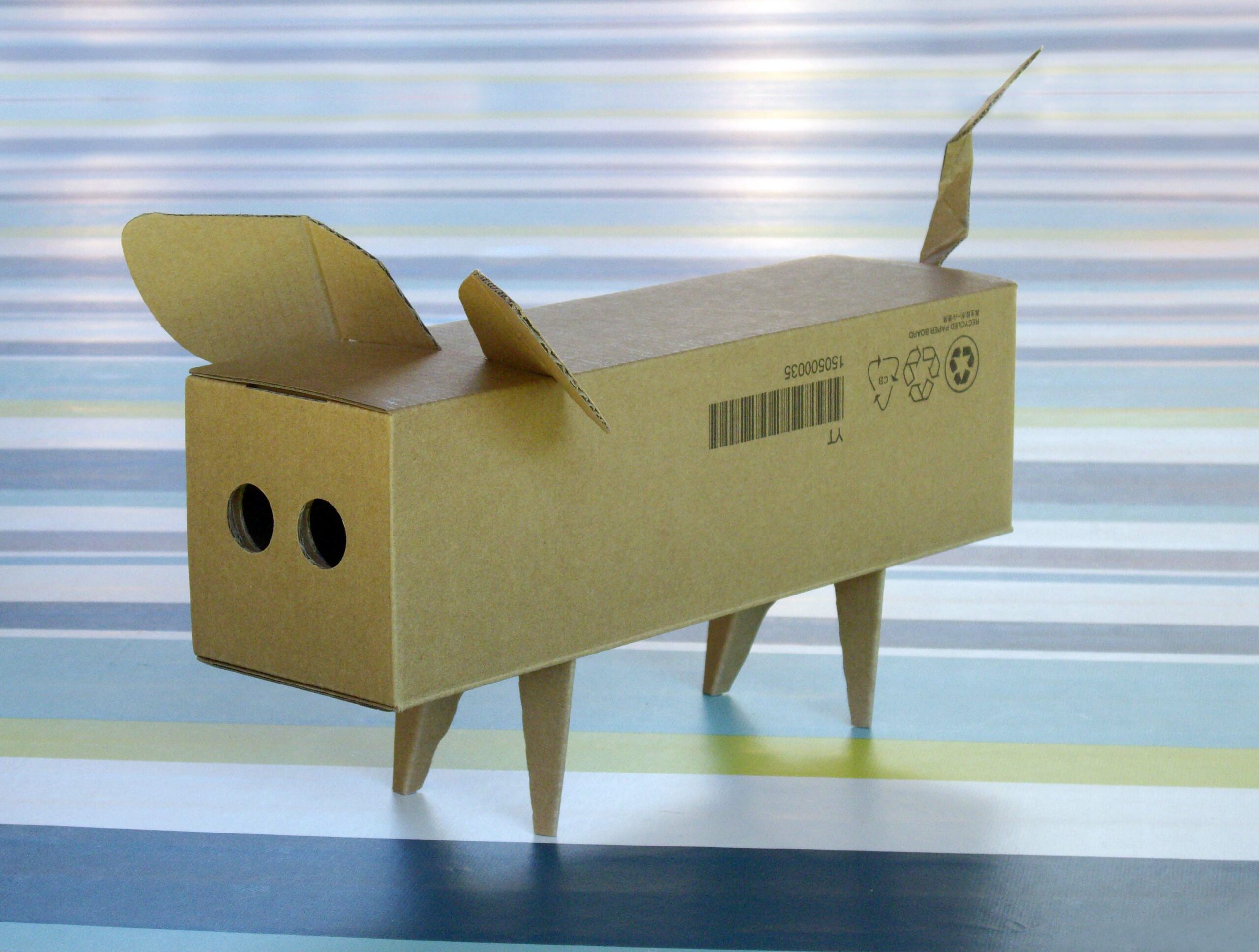 Un carton d’emballage qui a du nez ! Les trous du groin existaient déjà ; pas grand chose à rajouter…Tatoo sur la fesse gauche… On peut même retracer la bête tout au long de son élevage.