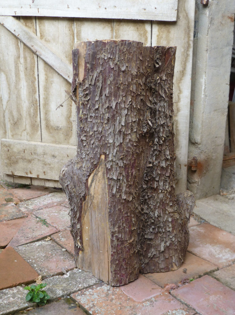 83 cm d’épicéa en hauteur dans la grange…Idée première : cafetière italienne.À cette étape-ci, je n’ai toujours pas l’idée finale esthétique en tête.Quelques coups de ciseau sup, et le bois me parle à travers ses ondulations en partie basse…Suivant les conseils du bois, je décide de faire « fondre » le réservoir d’eau.Encore beaucoup de détails manquent, sans compter la finition.Environ 200 heures et je peux demander à cette fondante Italienne de prendre la pose…Et même si elle a un petit air penché……ses16 petits kg sont baignés d’un caractère « bien trempé » !Et ne croyez pas qu’en vous tournant le dos, ses délicieuses rondeurs s’évanouissent…